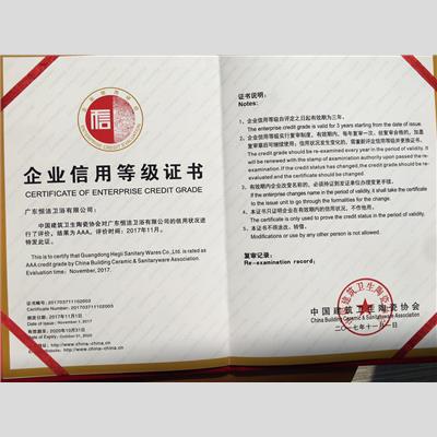 獎 項:企業信用等級證書AAA級-3年評審第一年