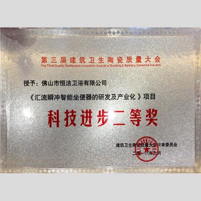 獎 項:科技進步二等獎 (匯流瞬沖智能坐便器的研發及產業化)