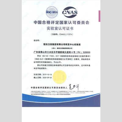 獎 項:實驗室CNAS認可證書