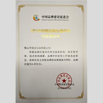 獎(jiǎng) 項(xiàng):2018中國品牌價(jià)值評(píng)價(jià)