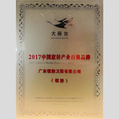 獎 項:大雁獎 2017中國家居產業百強品牌