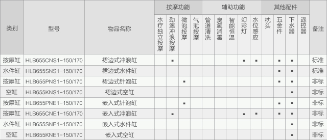 恒潔HLB655系列嵌入式按摩缸