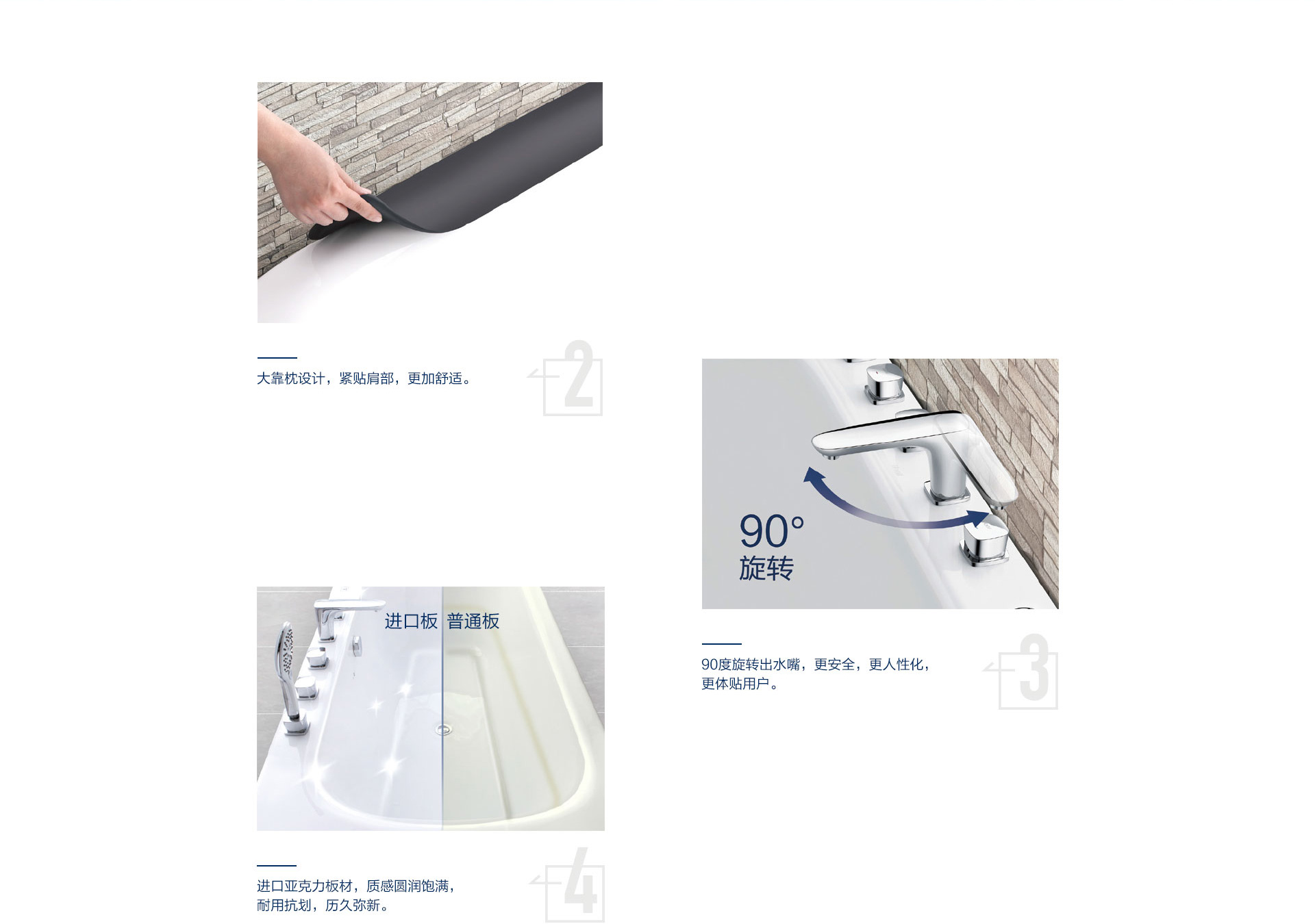 勁速沖浪按摩系統、微泡泡按摩系統及汽泡按摩系統三件模式供你選擇,讓你隨心所浴,樂享水悅生活