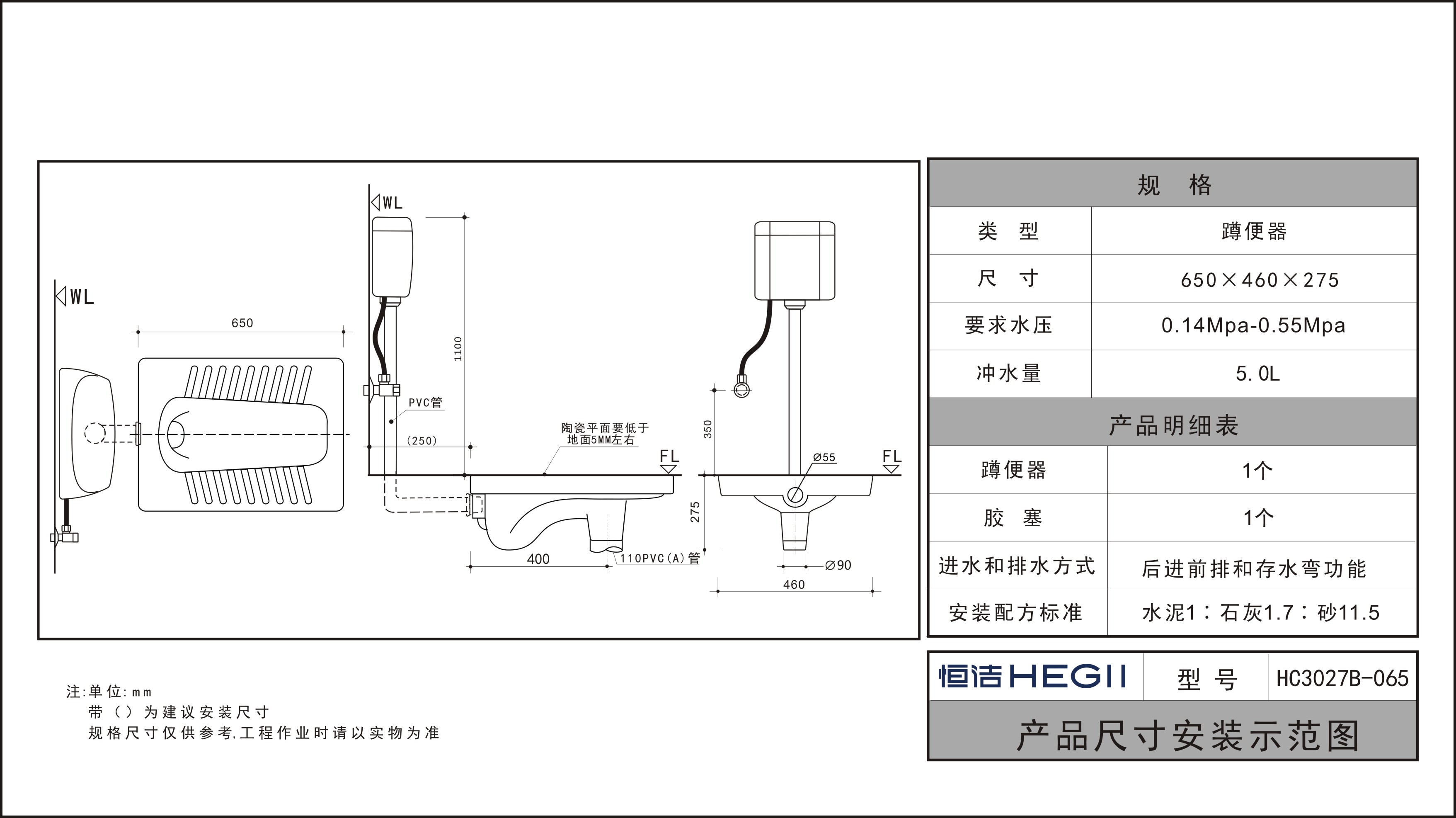 HC3027B-065導流導壓蹲便器