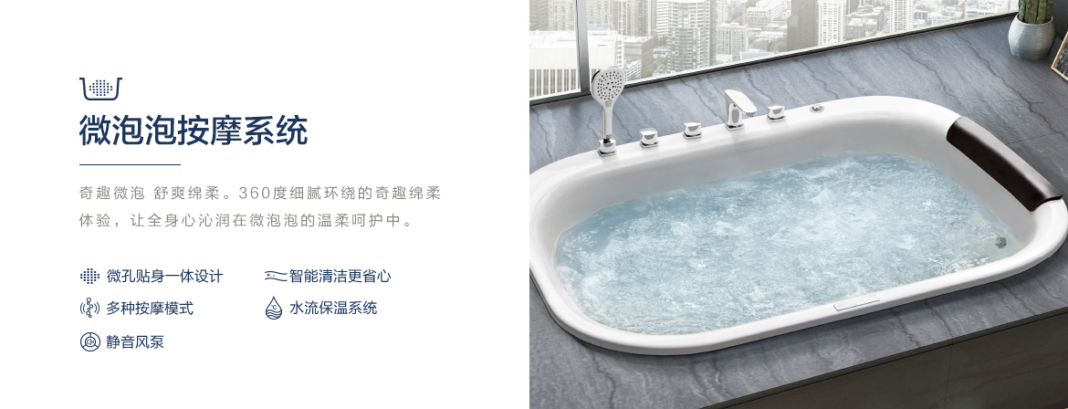 在家也可以享受SPA按摩體驗(yàn),恒潔水悅SPA技術(shù),可提供四種按摩系統(tǒng),